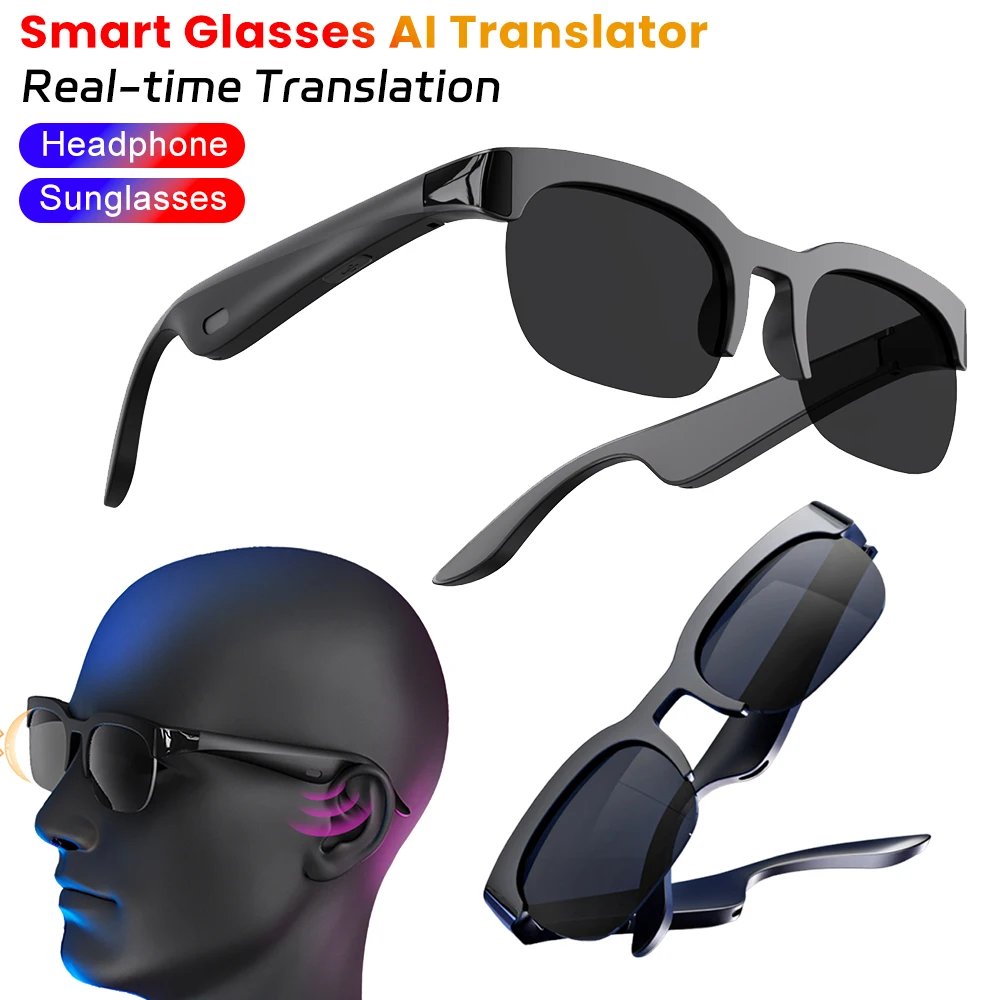 Óculos Inteligentes com Tradução e Música permitem traduzir conversas em tempo real enquanto reproduzem música, oferecendo uma experiência hands-free completa.